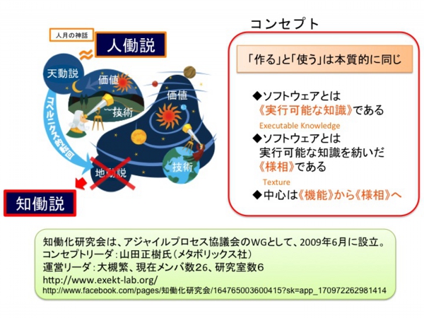 - ソフトウェアとは実行可能な知識であり、ソフトウェアが置かれる世界や様相を主題としなくてはならない。不確実性に対応するアジャイルプロセスを発展させ、利用や社会的な相互作用をデザインする手法を探求していく。