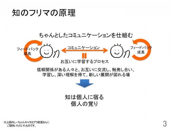 個人が日頃から取り組んでいることを持ち寄って知を自由に交換する場として「知のフリマ」というイベントをデザインして遂行しています。2012年11月3日に第1回を開催し、2013年6月に第2回、11月に第3回を開始しました。