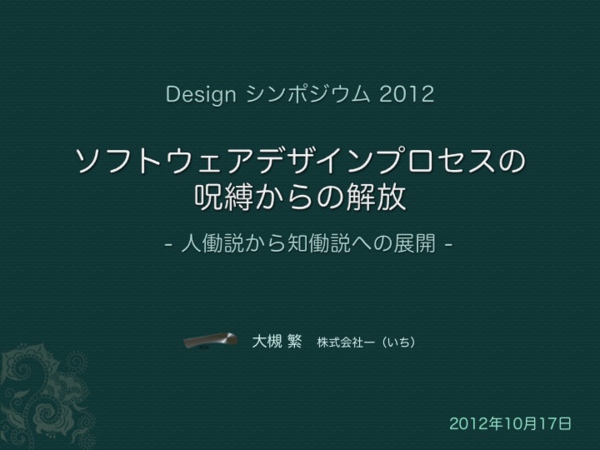 2012年10月17日に、京都で開催されたDesignシンポジウム2012にて、『ソフトウェアデザインプロセスの呪縛からの解放』の講演を行いました。発表資料をデザイン分野らしくしっかりと作りこんだものを使用しました。ポイントは、以下の図に集約されています。
